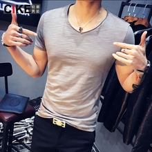 纯色t恤男短袖V领竹节棉薄款体恤简约百搭打底衫韩版修身半袖衫潮