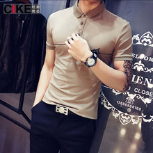 cike夏季短袖t恤男修身翻领保罗衫韩版潮男士翻领短袖polo衫半袖