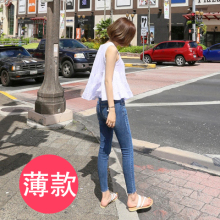 夏季韩国新品高腰磨破九分牛仔裤女显瘦毛边铅笔9分小脚裤薄款潮