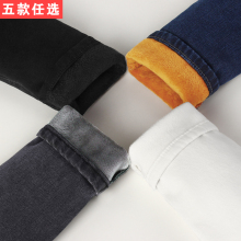 冬季韩版紧身黑灰色加绒加厚九分牛仔裤女蓝色高腰加棉小脚铅笔裤