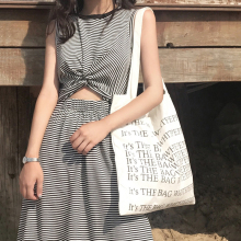 复古韩版chic风时尚扭结设计收腰修身条纹印花连衣裙女显瘦中长裙