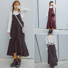 2017春装新款复古纯色A字背心裙韩版V领后露背外穿吊带连衣长裙潮
