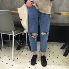 2017春季韩版学生百搭破洞九分裤哈伦裤宽松显瘦休闲牛仔裤女长裤