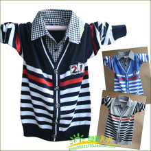 包邮 男童开衫毛衣 中大童衬衫翻领假两件套儿童纯棉线衣春秋装B2
