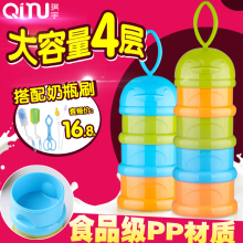 婴儿奶粉盒 便携式外出密封罐宝宝装奶粉格零食分装盒大容量四层