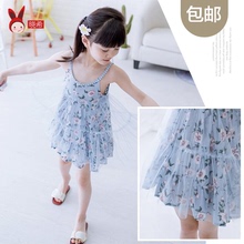 女童连衣裙 2017新款童装女童夏装公主裙女孩儿童碎花吊带裙子