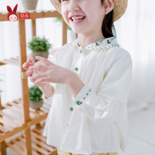 【晓希】2017新款童装春装儿童女童清新植物刺绣衬衣长袖翻领衬衫