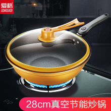爱格多功能麦饭石压铸真空节能无油烟不粘炒锅不沾锅电磁炉通用锅