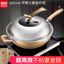 爱格32CM苹果金炒锅不粘锅铁锅电磁炉通用平底不粘锅具厨具无油烟