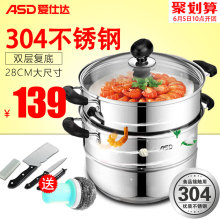 爱仕达蒸锅304不锈钢二层双层28CM加厚复底电磁炉锅具蒸格锅