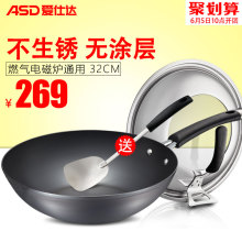 爱仕达炒锅铁锅30/32cm炒菜锅具无涂层铸铁锅电磁炉燃气老式生铁
