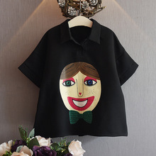 童装2016春秋新款韩版女童头像印花连衣裙秋儿童宽松中袖拼接裙