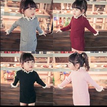 2015秋款新款韩版女童长袖T恤儿童半高领花边螺纹高弹力打底衫