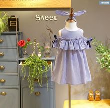 女童公主连衣裙童装2017夏装新款韩版儿童露肩条纹背心裙送发箍