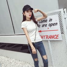 2017夏季新款韩版修身显瘦短袖圆领针织t恤女纯色百搭简约上衣潮