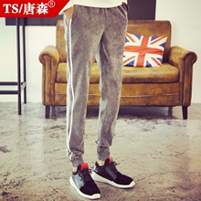 唐森春季时尚休闲裤男修身长裤男士小脚裤韩版裤子男潮流磨毛男裤