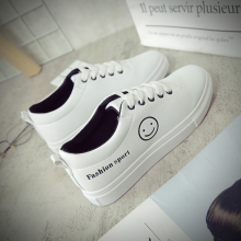 2017春季新款小白鞋女系带韩版百搭笑脸平底休闲鞋学生运动鞋板鞋