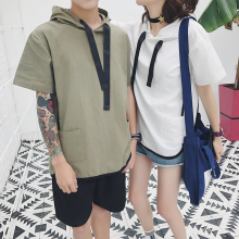 情侣装2017夏季新款原宿连帽半袖体恤衫 男女学生青年宽松短袖T恤