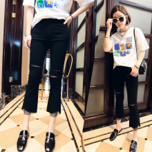 【限时包邮】牛仔裤女春夏新款韩版时尚花朵刺绣破洞显瘦九分裤潮