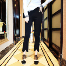 休闲裤女2017春装新款韩版时尚修身百搭黑色显瘦毛边喇叭九分裤潮
