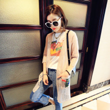 针织衫女外套春装新款韩版时尚修身薄款镂空绣花中长款显瘦开衫潮