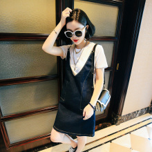 包邮连衣裙套装女夏季新款韩版时尚修身百搭牛仔背带裙显瘦2件套