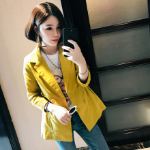 小西装女麻料2017春夏新款韩版时尚修身百搭双排口纯色显瘦外套潮