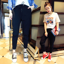 休闲裤女裤子2017春装新款韩版时尚修身百搭简约阔腿哈伦裤九分裤