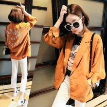 小西装女薄款2017春夏新款韩版时尚修身百搭麻料字母刺绣显瘦外套