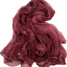 桑蚕丝刺绣丝巾女冬季长款纯色酒红褶皱真丝围巾秋季新款百搭2016