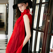 高档戒指绒羊绒围巾 纯色百搭山羊绒保暖女秋冬长款披肩两用大红
