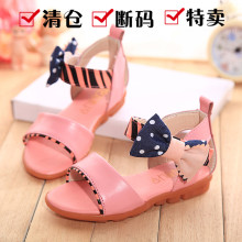 女童凉鞋2015夏季新款童鞋撞色蝴蝶结儿童凉鞋中大童鞋断码清仓
