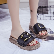 2017春夏新款时尚百搭平跟平底拖鞋女韩版学生外穿厚底凉拖女鞋子