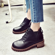 英伦风复古粗跟马丁靴女秋冬季加绒系带休闲短靴女百搭短筒女靴潮