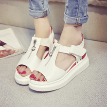 2017夏季韩版时尚鱼嘴凉鞋女休闲平底中跟学生鞋松糕厚底女鞋子潮