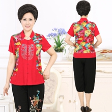 中老年女装夏装套装妈妈装短袖t恤40-50岁中年民族风唐装两件套装