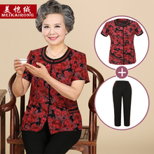 中老年人女春装套装夏装妈妈装套装60-70岁80老奶奶短袖上衣+裤子