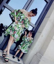 亲子装 女童夏季海边吊带雪纺沙滩裙母女装度假吊带连衣裙飘逸