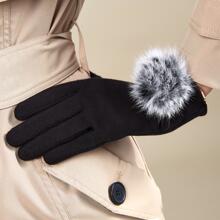 卓幻美冬 兔毛球绒布手套 女 秋冬 可爱女士手套 加绒手套触屏