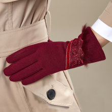 卓幻美冬 蕾丝花边绒布手套 女 秋冬 女士手套 布艺加绒手套可触