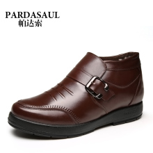 帕达索 冬季正品男士真皮英伦休闲保暖加绒毛皮鞋男 男式皮棉鞋子