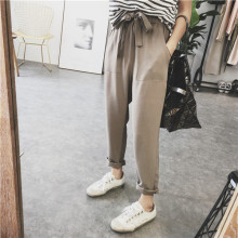 周木木。韩国订单 灰色羊毛呢阔腿哈伦9分裤 洋气货!推荐