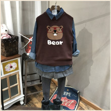 春季韩版胸前可爱小熊图案圆领百搭毛线马甲女上衣坎肩A55626款
