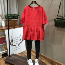 2017夏季森女系文艺范褶皱棉麻宽松娃娃衫短袖衬衫女装衬衣W10328