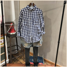 春季韩版文艺范小口袋长袖格子衬衫女上衣宽松衬衣E610款