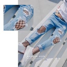 2017春装新款儿童时尚牛仔裤男女童韩版个性破洞牛仔裤水洗裤子潮