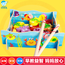 巧灵珑木质立体钓鱼双钓杆亲子钓钓乐游戏益智早教趣味玩具2-5岁