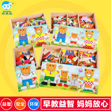 巧灵珑木制小熊换衣服游戏儿童益智早教手抓穿衣配对拼图拼板玩具
