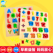 巧灵珑儿童木质字母数字拼图认知拼板益智早教积木制玩具2-3-4岁