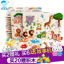 巧灵珑儿童木制卡通动物拼图20片拼板动手益智早教玩具2-3-4-5岁